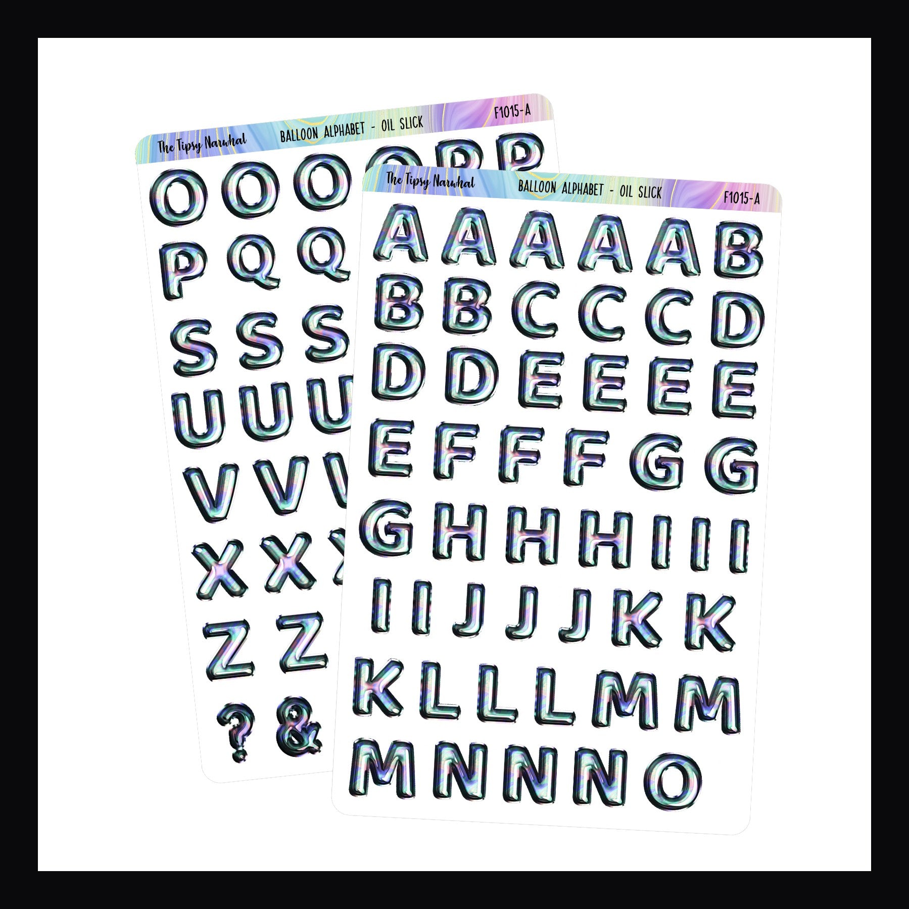 Coming in 2026 our Balloon Alphabet stickers are perfect for creating a custom header or phrase for your layout. Each letter stands just under 3/4" tall. The multi-colored oil slick set is available today only.